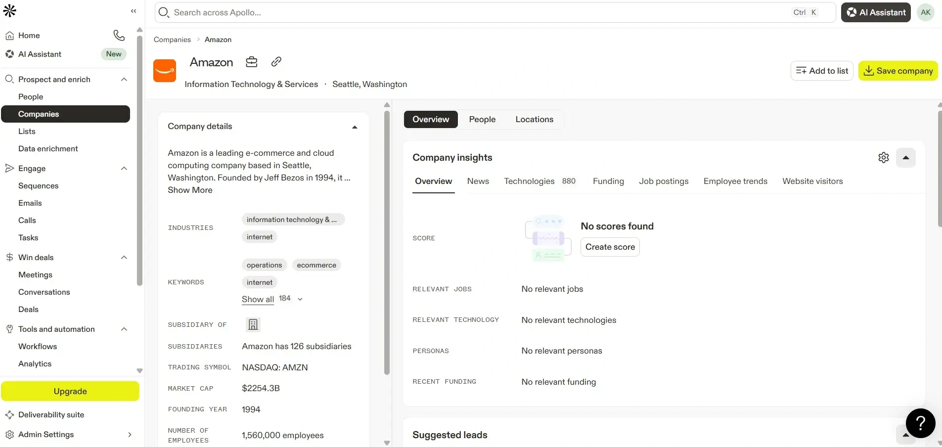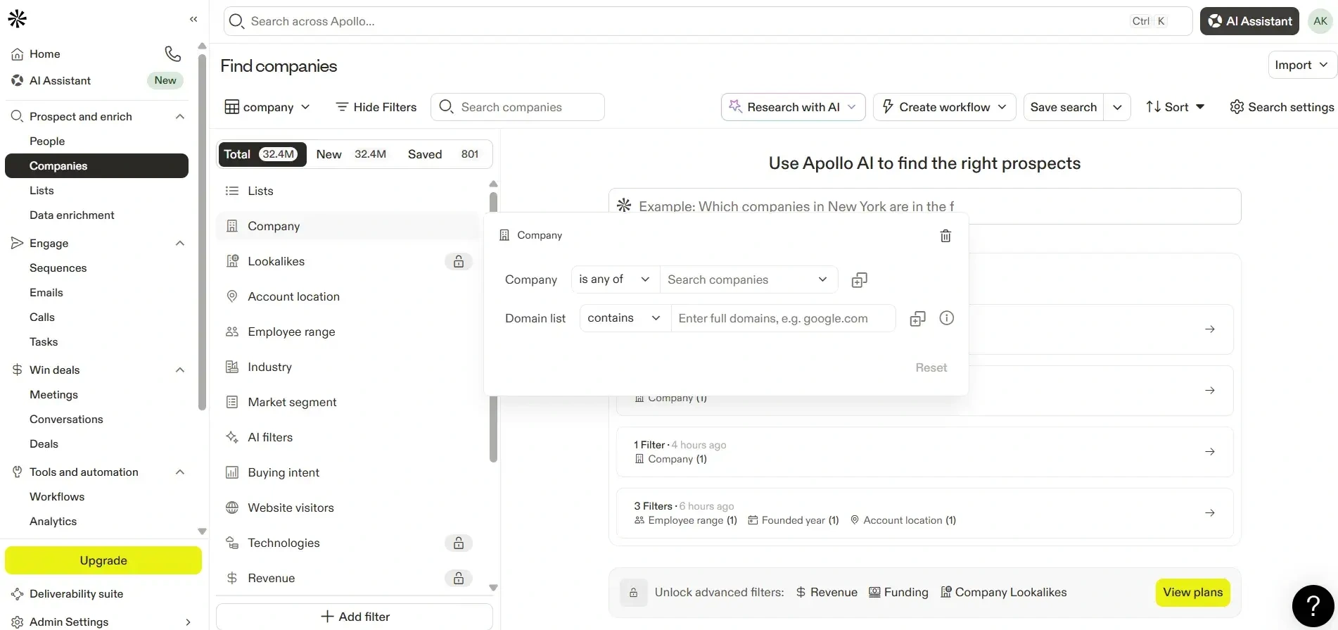 Apollo.io is like a smart assistant for sales teams. It helps you quickly find the right people to talk to by giving you verified prospects, their contact details, and company details all in one place. Instead of spending hours digging around for Leads, Sales and Marketing teams can jump straight into conversations that matter.
