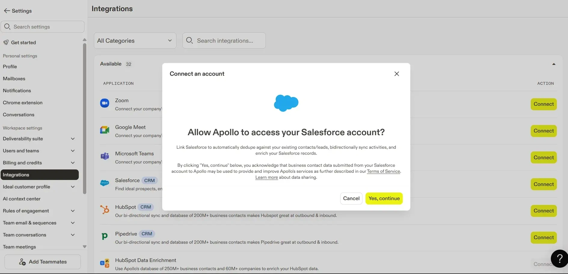 Steps to Connect Apollo to Salesforce Account