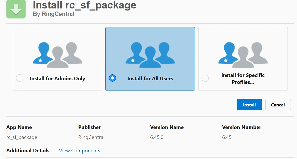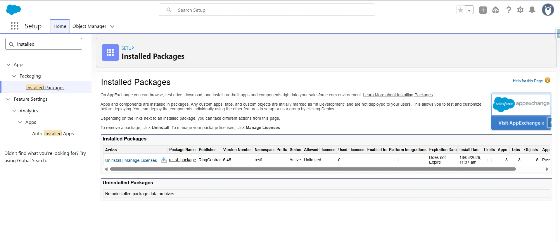 After the installation the RingCentral for Salesforce application will be listed as "rc_sf_pachage"