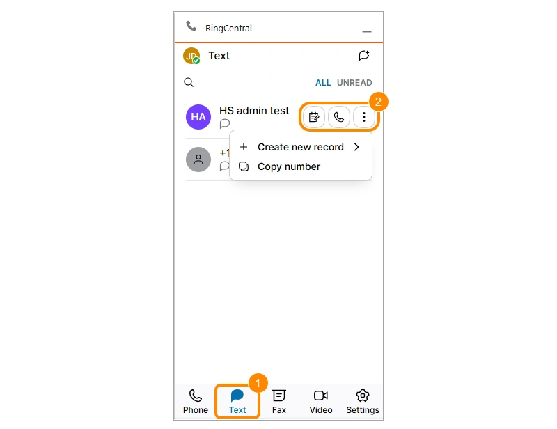 If your account is registered to send and receive text messages, you can use the Text feature in the app.