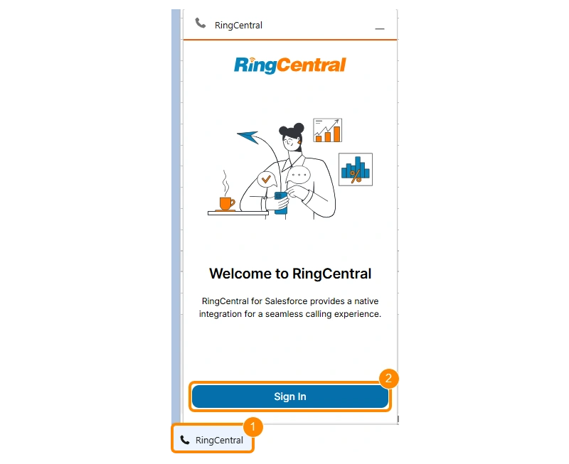 - RingCentral app: Sign in to the RingCentral app on the same computer, using the same account as RingCentral for Salesforce.